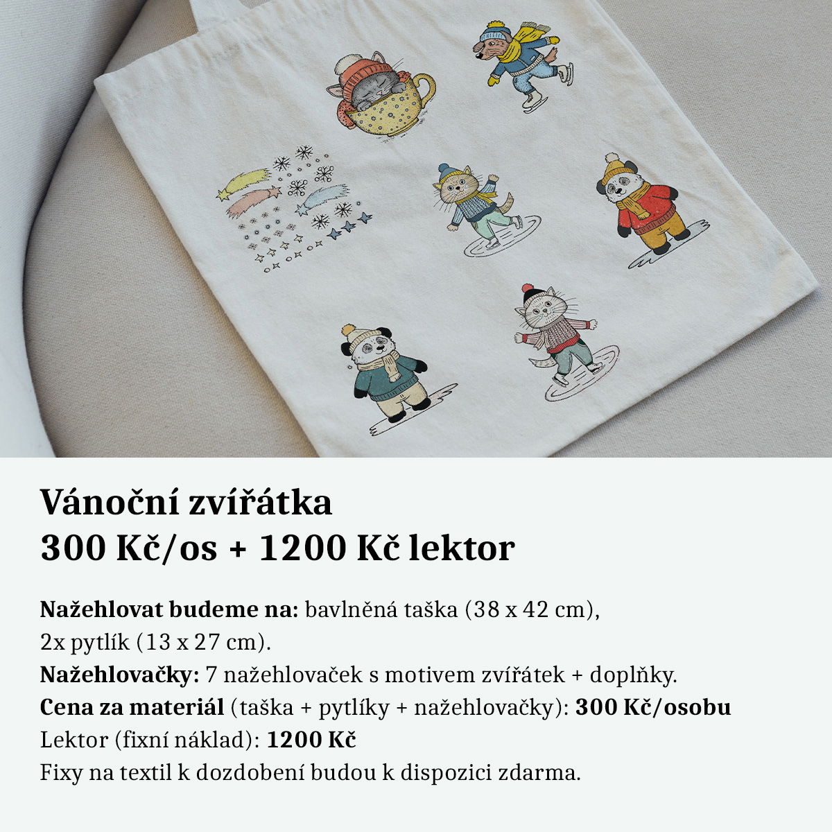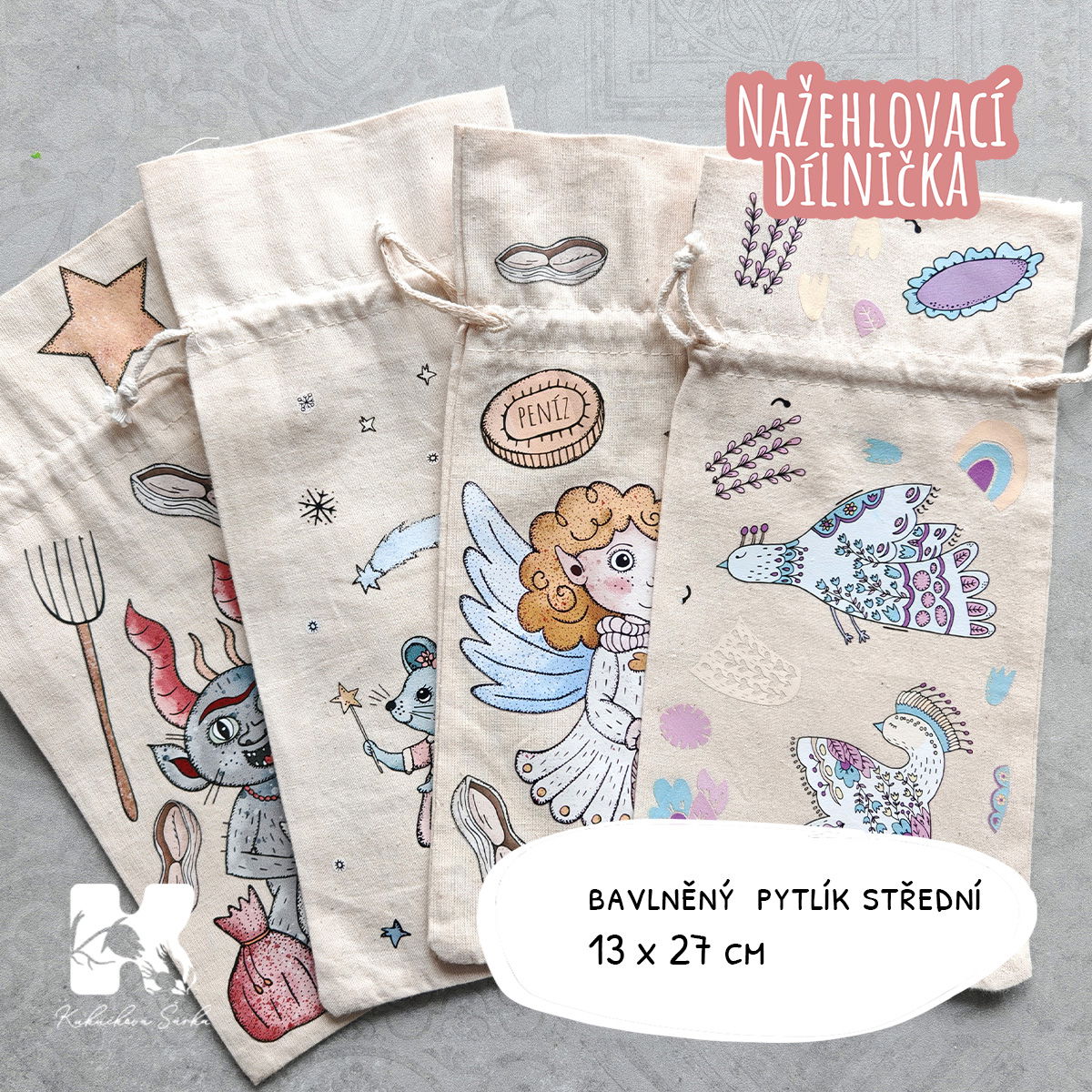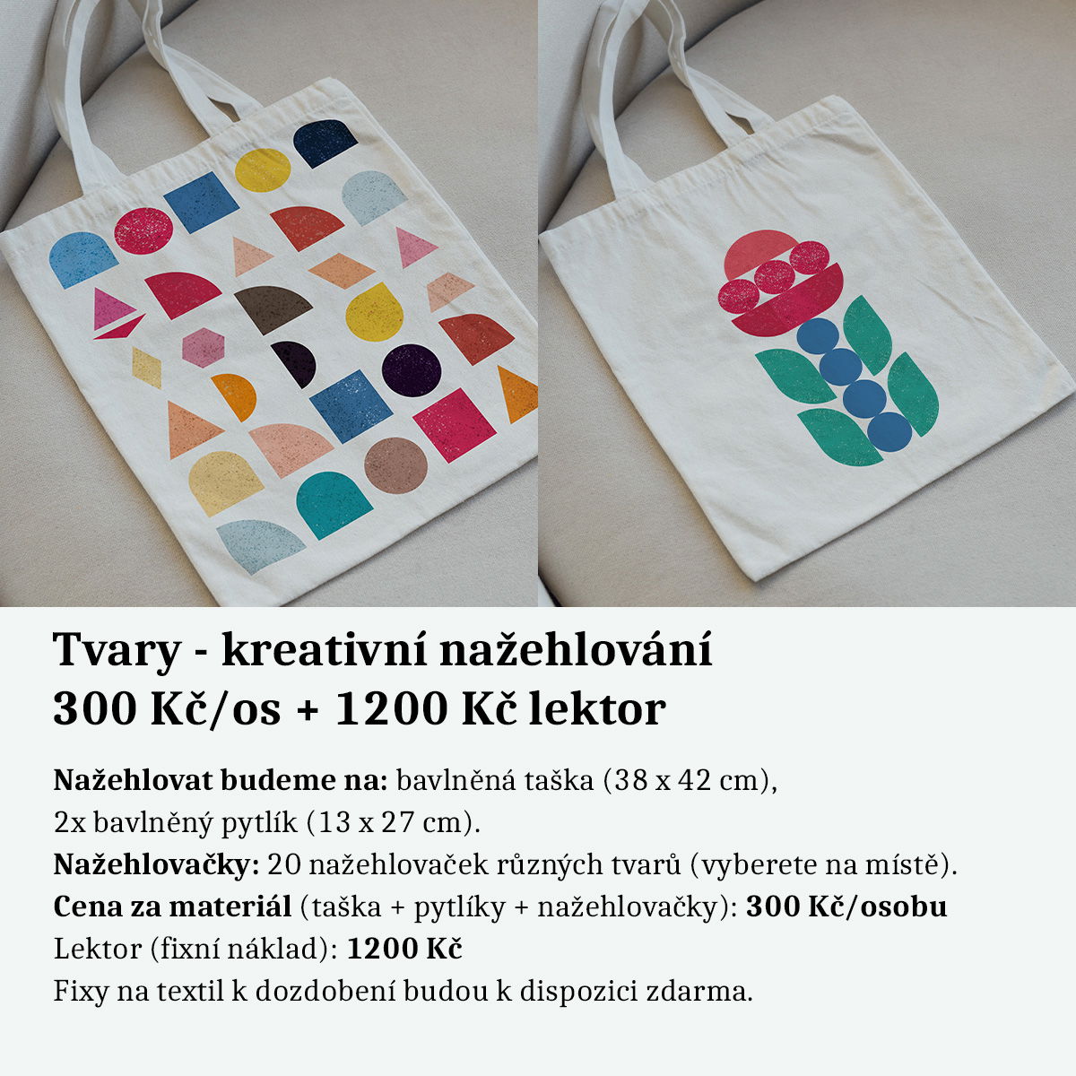 Nažehlovací dílnička je skvělou příležitostí, jak si vyzkoušet jednoduchou, ale velmi efektní techniku tvorby s využitím autorských ilustrací.Každý účastník si může vytvořit vlastní bavlněnou tašku nebo pytlík s obrázkem podle svého výběru. Nažehlování probíhá pomocí malých žehliček, které jsou bezpečné i pro menší děti. Po nažehlení si mohou účastníci své výrobky dozdobit textilními fixy a dodat jim tak osobitý styl.